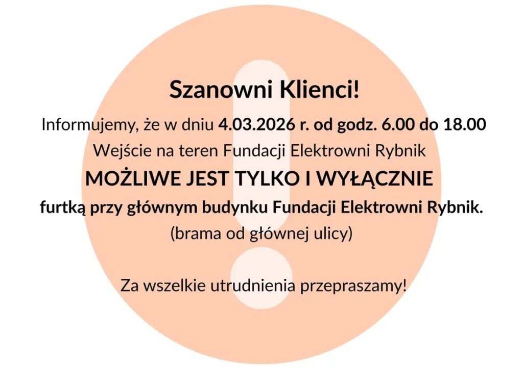 Informujemy że decyzją Fundacji Elektrowni Rybnik parking przy fundacji elektrowni Rybnik w środę 04.03 w godz 6.00-18.00 będzie niedostępny. Za utrudnienia przepraszamy.