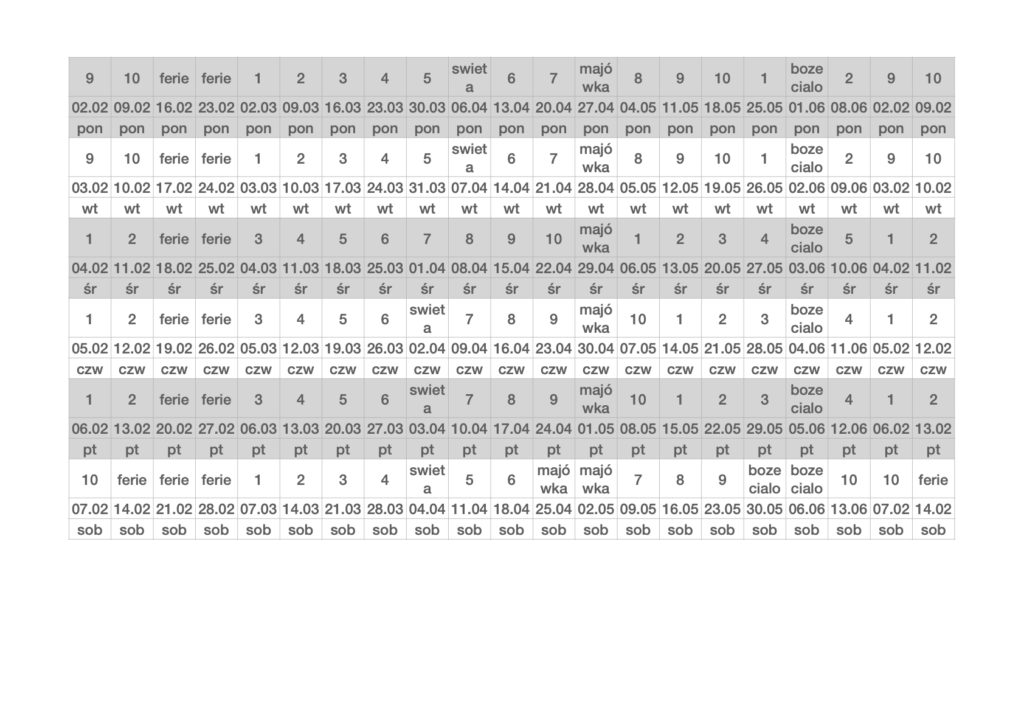Harmonogram od ferii Fundacja Elektrowni Rybnik
